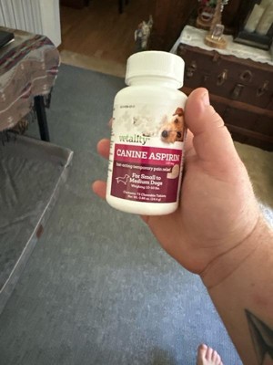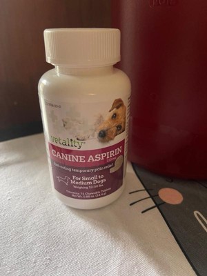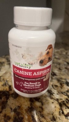 [This review was collected as part of a promotion.] I received this Vetality canine aspirin for my sweet little old man and I used it one time to relieve pain in his rear leg. It did seem to help him feel better. Soon afterward he was diagnosed with liver disease, so I haven't given it to him again. I will use on our 1 1/2 year old Golden Retriever if he should need it.