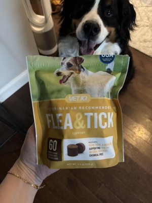 - Our tasty chews were made with dogs and pet parents in mind. The VetIQ® Flea & Tick Support for Dogs is a tasty hickory smoke-flavored soft chew that your dog will love, making flea and tick support easy and efficient for all pet parents