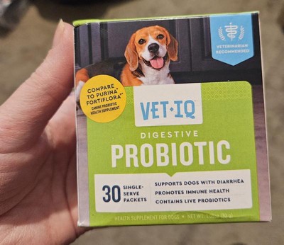 - Compare to the Leading Brand: Vet IQ™ Digestive Probiotic for Dogs is made with an active probiotic comparable to the leading brand, but at a price you’ll love