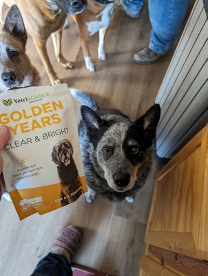 This review is part of a free sample program. Older dog is starting to have declining vision and more frequent irritation. He loves these soft and chewable supplements and I have noticed less need to clean around his eyes each day,