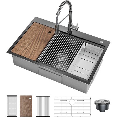VEVOR 32 inch Kitchen Sink Workstation, 304 Stainless Steel Undermount Sink, Drop-In Single Bowl Farmhouse Basin, Silver