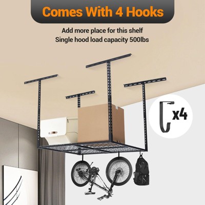 200 lbs/90.7 kg Strong Support: Engineered for durability, our steel garage bike rack's hooks each hold up to 50 lbs/22.68 kg, with a total capacity of 200 lbs/90.7 kg. Ideal for securely storing your bikes.