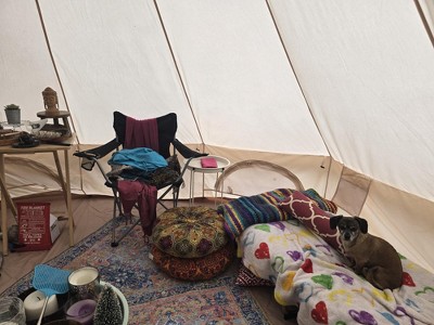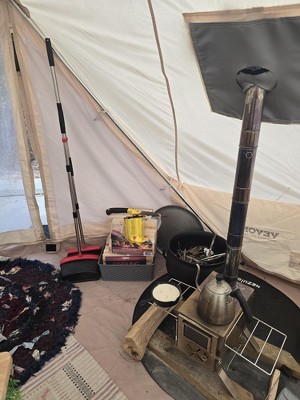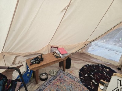 Its easier to put up with 2 people but manageable alone if patient enough; nice and roomy for luxury camping! So far she's done great in rain, wind, and heat. I put a tent stove in and have kept cozy in 27* !!! its big enough that I put a cot, 2 chairs a bench for sitting to remove shoes near the door 3 tray tables and the stove with room to maneuver inside and this is just the 13 ft yurt! Super happy with my purchase!!