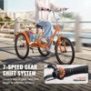 7-Speed Adjustable: VEVOR 3-wheel foldable cruiser trike adopts a Shimano 7-speed transmission system with adjustable gears, ensuring seamless and stable rides across uphill, downhill, and flat roads. Cruise through the city with confidence and stability, enhanced by the full-coverage mudguards.