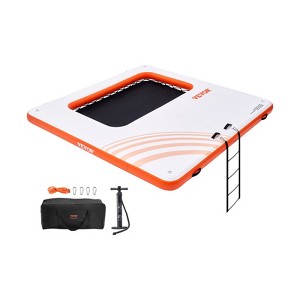 VEVOR Inflatable Floating Dock, 10x10FT Inflatable Dock Platform with 4*7FT Trampoline Mesh Pool, Non-Slip Floating Platform Water Mat