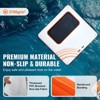 Secure Anchoring, Happy Playtime: Stay anchored in peace with our reliable system. Featuring 6 stainless steel D-rings, 4 galvanized iron hooks, and a 10-foot nylon rope, our inflatable floating island raft remains steadfast in the water. With a included detachable four-step soft ladder, getting on and off the floating platform is a breeze.