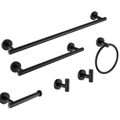 VEVOR Matte Black Bathroom Hardware Set, 5-Piece Stainless Steel Wall-Mounted Accessories with 16" Towel Bar, Hooks & Toilet Paper Holder