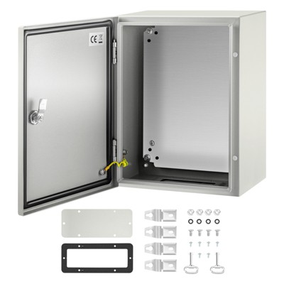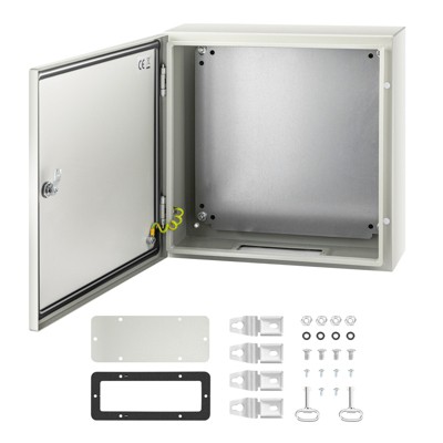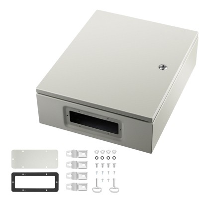VEVOR NEMA Steel Case, 24x24x8'' NEMA 4X Metal Electric Enclosure, IP66 Water & Dust Resistant, Includes Mounting Plate, Gray-white