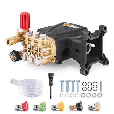 VEVOR Pressure Washer Pump, 3/4" Shaft Horizontal Triplex Plunger, 3300 PSI, 2.5GPM, Replacement Power Washer Pumps Kit with 5 Nozzles, Black