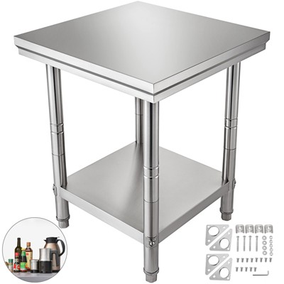 High-Quality Stainless Steel: This work table, measuring 24 x 30 x 31 inch, is made from SUS201 stainless steel for the tabletop, shelves, and legs. It offers superior rust resistance, a sleek appearance, and a smooth surface that is easy to clean with a simple wipe.