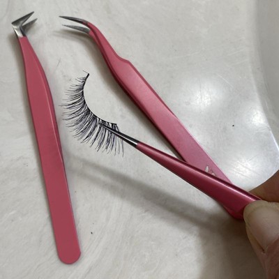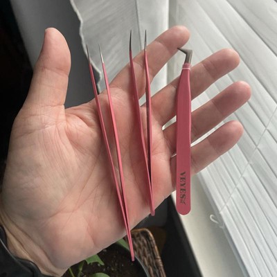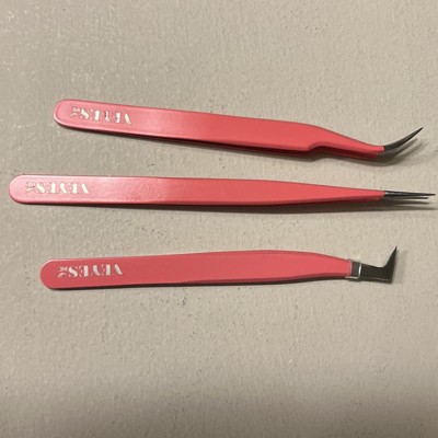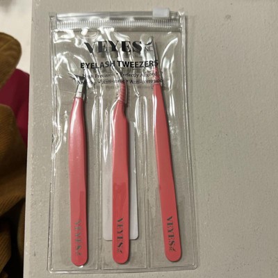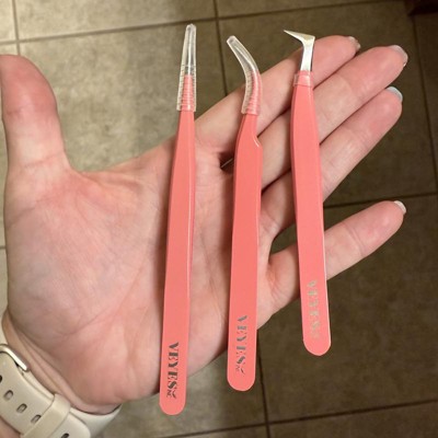 Pretty pink set of 3 eyelash tweezers by Veyes