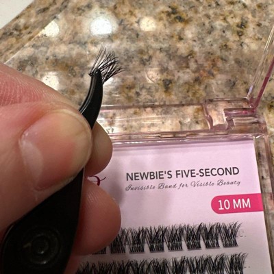 [This review was collected as part of a promotion.] These are a pack of newbie five second lash extensions in size 10mm. They are small bundles of lashes that are adhered to your real lash line with an adhesive lash extension glue. They are somewhat hard to get off the packaging the way they are stuck down, and additionally they are challenging to align on your eye the way I want them. These definitely require practice.