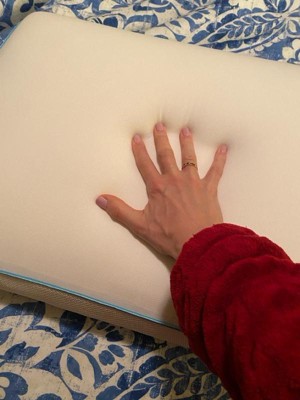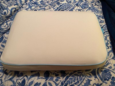 [This review was collected as part of a promotion.] This pillow, one, is a nice size, filling up my pillow case nicely. It is super comfortable too. It’s my new favorite pillow. I tend to get hot and it does have a nice cooling element for my head
