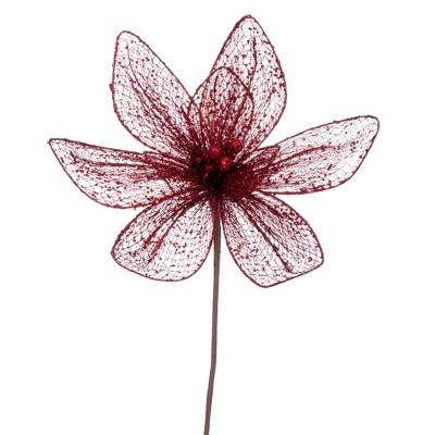 Vickerman 11" Rose Gold Velvet and Glitter Mesh Poinsettia Flower on Stem, 6 per bag.