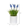 Vickerman 13.5" Artificial Purple Hyacinth Flower in Ceramic Pot. Create a calming and cozy space with the addition of this purple hyacinth in a simple white pot. The pot is 5" high by 5.5" wide.