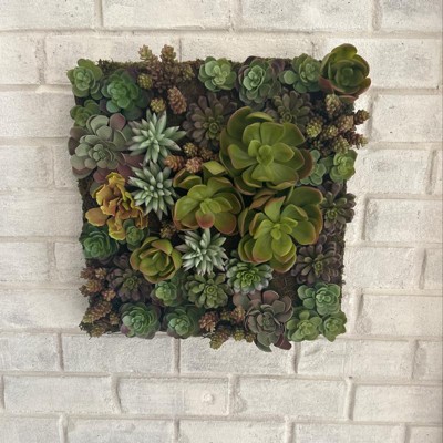 - LUSH GREENERY that fits all decor. Indoor Artificial Multi-Colored Succulent Wall Arrangement will add a welcome feel to any room in your home or office. Measures 16.5" high x 16.5" wide x 4.5" deep