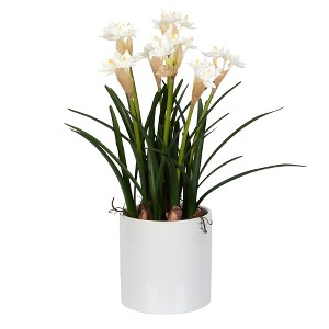 Vickerman 16.5" Artificial White Daffodil in Ceramic Pot.