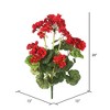 Vickerman 20" Artificial Geranium Bush, 4 Pack. This Geranium Bush is made from a mix of Polyester and PVC, it Features 9 Blossoms and rich foliage.