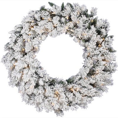 Vickerman 30" Flocked Kiana Artificial Christmas Wreath, Warm White Dura-Lit® LED Mini Lights