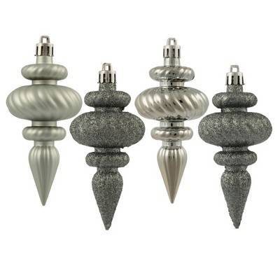 Vickerman 4" 4-Finish Finial Christmas Ornament, 8 per Box. This ornament is made with shatterproof plastic to reduce the likelihood of breaking when dropped.