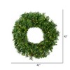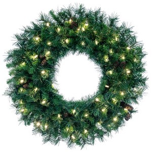 Vickerman Cheyenne Pine Artificial Christmas Wreath with PVC Tips. The Cheyenne blend features a mixture of needle lengths, light to dark green needle tones, and incorporates pinecones to create a realistic look.