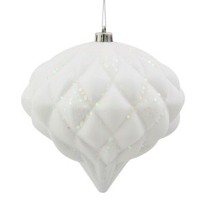 Vickerman Matte and Glitter Diamond Onion Christmas Ornament. This onion-shaped ornament is made of shatterproof plastic, features a sparkly diamond pattern of matte and glitter finishes, and comes with a Drilled and Wired Secure Cap.