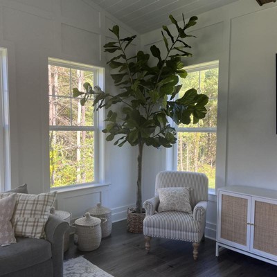 Add a natural touch to your home decor with this Tall Potted Faux Fiddle Tree. The pot provides a modern base, making this an ideal choice for those who want to add a touch of faux greenery to their plant decor. Perfect for indoor use, this maintenance-free large faux plant is easy to keep looking fresh with just a quick wipe of a dry cloth. Whether you're looking for an indoor faux tree or a faux floor plant, this potted tall artificial tree is sure to add a touch of greenery to your home or office decor.