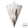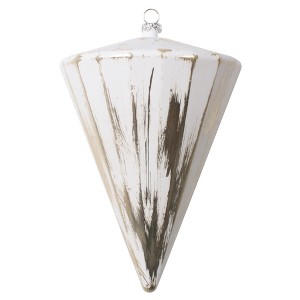 Vickerman 6" Brushed Cone Ornament 4/Bag. White base with brushed accents. Includes 4 pieces per bag. Made with shatterproof plastic.