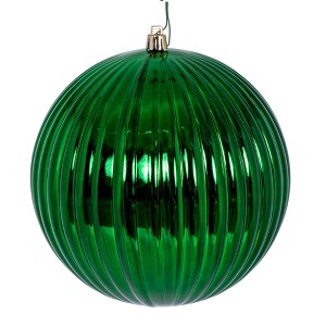Vickerman 4" Lined Ball Ornament with vertical lines and string hanger. It measures four inches. Includes six pieces per bag.