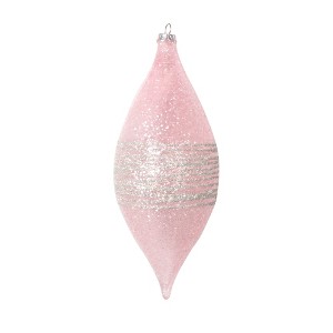Vickerman 7" Shuttle Ornament. Light colored, semi transparent ornament, with a stripe of champagne glitter. String hanger. Includes four pieces per bag.