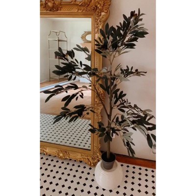 Add a natural touch to your home decor with this Tall Potted Faux Olive Tree. The pot provides a modern base, making this an ideal choice for those who want to add a touch of faux greenery to their plant decor. Perfect for indoor use, this maintenance-free large faux plant is easy to keep looking fresh with just a quick wipe of a dry cloth. Whether you're looking for an indoor faux tree or a faux floor plant, this potted tall artificial tree is sure to add a touch of greenery to your home or office decor.