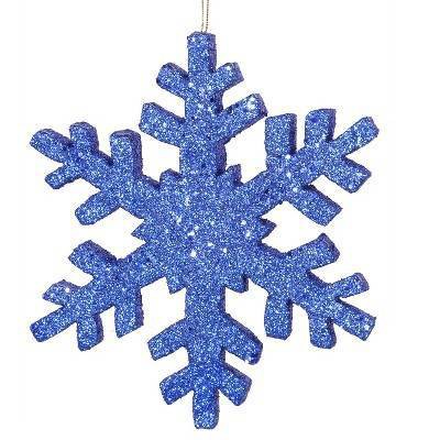 Vickerman Glitter Snowflake Christmas Ornament. Add some extra sparkle to your holiday ornament collection with this festive double sided, glitter accented Snowflake ornament. This ornament is extremely durable and can be used both indoors and outdoors.