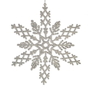 Vickerman Glitter Plastic Snowflake Christmas Ornament. The snowflakes are made of Shatterproof plastic, generously embellished with matching glitter accents, and include a Nylon hanging string.