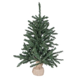 Vickerman Anoka Pine Artificial Christmas Tree featuring PVC tips. This little tree comes has rich green PVC tips, and is fixed in a decorative Burlap Base. It's the perfect accent to any holiday décor.