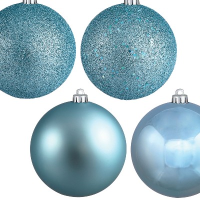 I purchased the 6” shiny baby blue ornaments. For my tree they are too aqua, but nice size and well made. I thought they were a bit over-priced, but if they were more of a true blue I would keep them. Also, the seam is visible, although can likely be hidden once on a tree.