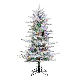 Vickerman Flocked Slim Sierra Fir Artificial Christmas tree. Enhance your Holiday décor with this snow covered Fir tree, featuring beautifully flocked PVC tips, it comes with a tree stand.