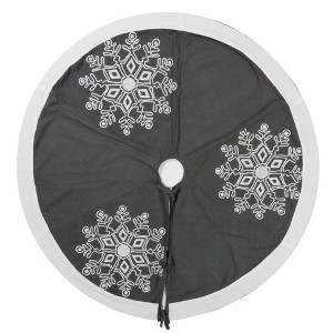 Vickerman Winter Snowflake Christmas Textile Collection featuring Festive Frost Grey Duckcloth With Pure White Trim And Embroidered Snowflake Motif.
