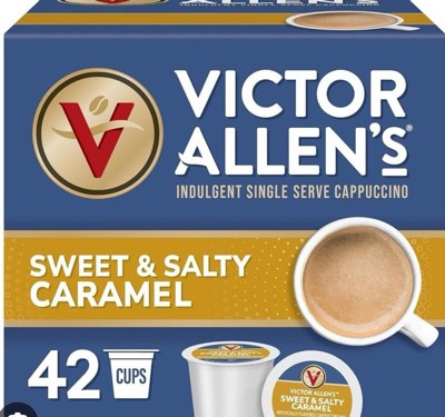 Victor Allen's Coffee Sweet and Salty Caramel Flavored Cappuccino, 42 Count, Single Serve K-Cup Pods for Keurig K-Cup Brewers Brewers