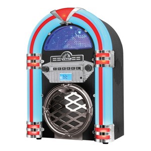 Victor® 10-Watt Broadway Desktop Bluetooth® Home Jukebox with Built-in Speakers, LED Lights, CD Player, FM Radio, and Aux, VDTJ-1550-BK in Black