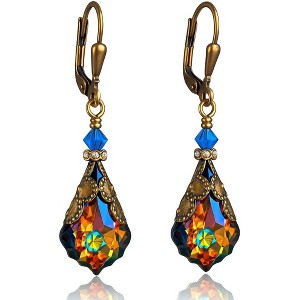Victorian Style Dangle Earrings with Colored Austrian Crystals