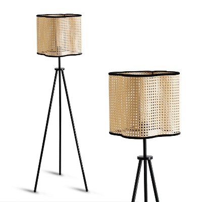 [This review was collected as part of a promotion.] This light consists of a wood grain finish, topped with a silk bamboo woven shade. Perfect addition to your living room, bedroom, or study. Shade is silk bamboo. Best paired with LED bulbs. Cord length is over 6 feet. Designed for easy assembly with straightforward instructions.
