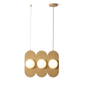 - SLEEK AND MODERN DESIGN Unveil a touch of elegance in your living space with our contemporary wooden pendant light. Boasting a stunning triple orb structure with a chic wooden finish, this fixture is an art piece in itself. Perfect for creating a statement in living rooms, dining areas, or above kitchen islands, its modern design effortlessly complements an array of decor styles, from rustic to ultra-modern.