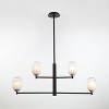 - Seren 4-Light Pendant: The Seren Collection is a striking series of fixtures made with matte black steel lamp frames and handmade frosted glass lampshades. It includes a single light sconce, 4-light and 3-light sconces, a 9-light chandelier, and a 4-light pendant.