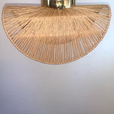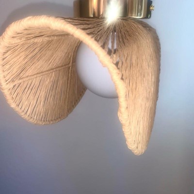 - BOHO APPEAL: Unveil the Sovev Wall Sconce/Flush Mount, a versatile masterpiece that marries the rustic allure of hand-woven rattan with the sophistication of a brass finish. Whether mounted against the wall or set as a flush fixture, this piece radiates bohemian chic, perfect for revamping your living space or bedroom with an artistic touch.