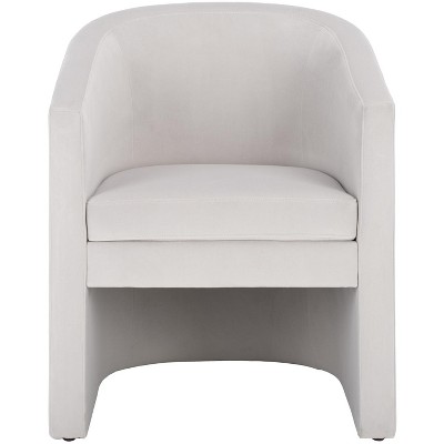Give a plush and contemporary update to your living space with our Vidar accent chair. Refined to its striking essential, our accent chair vouches for a clean-lined and airy profile. The chair is fully upholstered with a sheltering silhouette to offer a plush and comfy seat. It is covered in fade-resistant fabric with soft and supple velvety textures. Enriched in a stunning light grey hue, our accent chair makes a chic statement anywhere from your living space to your bedroom.