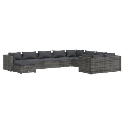 Product Name: VidaXL 10 Piece Garden Sofa Set with Cushions Black Poly Rattan - 2x Corner 5x Middle 2x Sofa Table