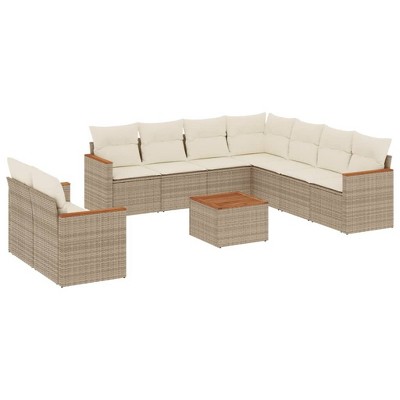 Product Name: VidaXL 12 Piece Patio Sofa Set with Cushions Beige Poly Rattan - Beige With Table