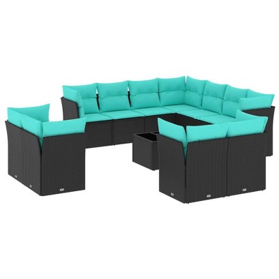 vidaXL 12 Piece Patio Sofa Set with Cushions Poly Rattan