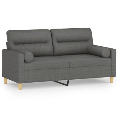 Product Name: VidaXL 2-Seater Fabric Sofa with Throw Pillows-Dark Gray, Stylish Metal Frame