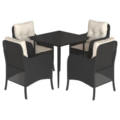 vidaXL 3 Piece Black Poly Rattan Patio Dining Set with Cushions - Weather-Resistant Outdoor Garden/Backyard Furniture with Tempered Glass Tabletop
